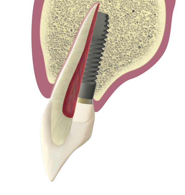 Vorteil einer Sofortimplantation: Zum Zeitpunkt der Extraktion steht in der Regel noch ein in Höhe und Breite unveränderter Alveolarkamm für die Aufnahme des Implantates zur Verfügung.